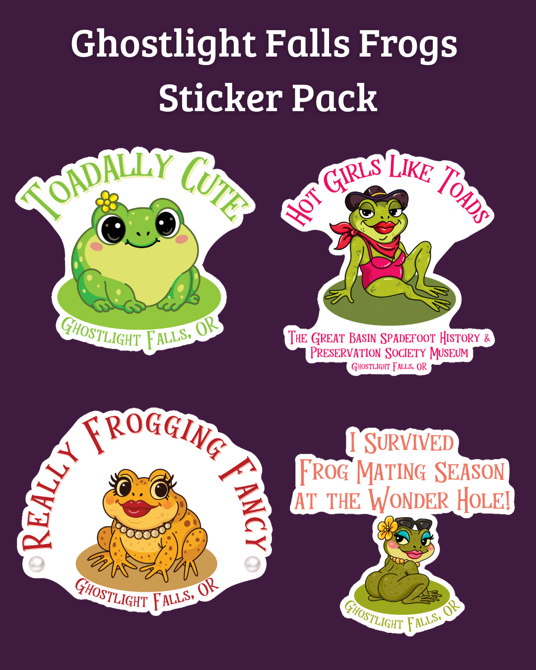Bundle includes: 1 Signed Copy of Cooking Up A Demon, 1 SFW Art Print of Kallax, 1 NSFW Art Print of Kallax & Bea, 4 Ghostlight Falls Frog Stickers, 1 For the Plot Bookstore Sticker.